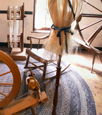 On the second floor, among the many collections of tools, a lovely woman in period costume named Susan demonstrated the art of weaving from flaxen thread to make linen, as well as the meticulous process by which the strands of soft flax emerged from a course stalk.